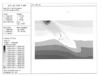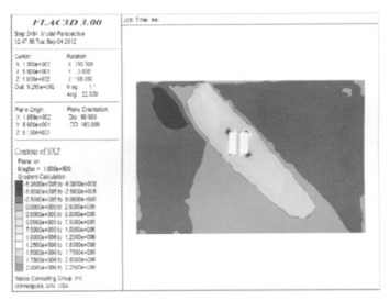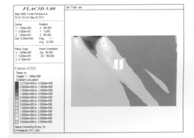 3D software, researches the influence of thrust faults on the stability of surrounding rock, and finds out the rule that reverse fault changes the distribution pattern of the surrounding rock stress gradually increase with depth, hence increases the maximum shear stress and maximum principal stress in part of the region, especially the stress above orebody, which leads to the shear failure area in upper plate fault, which significantly increases the risk of stope roof falling and collapsing. Close attention should be paid and active and effective support measures should be taken to avoid safety accidents.