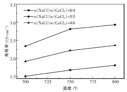 4 molten salt system is also of significance to the further understanding of its mechanism of electrolytic conduc - tivity. Effects of temperature and component mole ratio in molten salt on conductivity of NaCl-CaCl