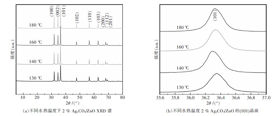 3 compound quantity and different hydrothermal temperature of ZnO composite photocatalyst were researched. The results show that the photocatalyst prepared with two-percent of Ag