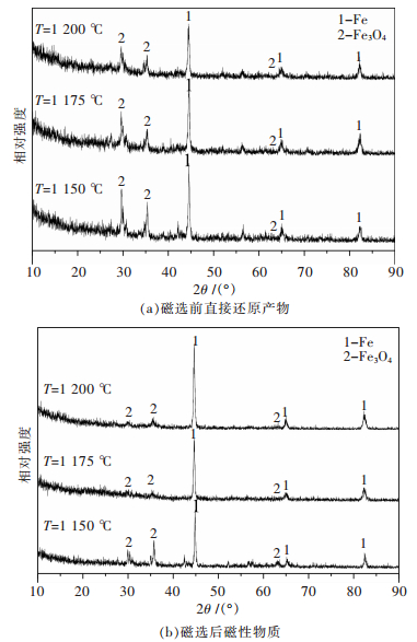 4 and fayalite are the main forms of iron among the copper slag after iron ore phase analysis. With the roasting temperature of 1 175 ℃,the carbon content of C/O=1.2, the alkalinity of