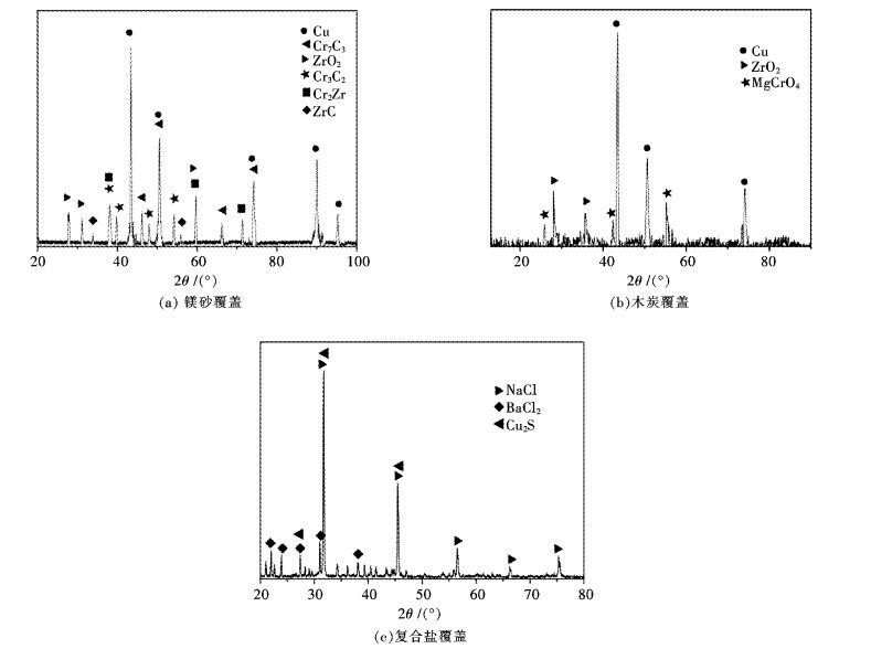 Oxidation is one of the key factors of high strength high conductivity CuCrZr alloys melted in the non-vacuum condition which limits its industrialized continuous cast. This paper investigates the effects of anti-oxidation and coverage materials on the non-vacuum melting process in order to slow the mass loss of Zr. The results indicate that Mg addition can effectively slow the mass loss of Zr at the initial stage of melting process below 1 350 ℃. After melting for 30 min, Zr residual keeps the same level; the mass loss of Zr is very marked because the Mg protection is greatly weakened when the melting temperature reaches 1 350 ℃. Composite salt can effectively improve the residual of Zr with 40.86 % of residual of Zr after melting for 30 min. The XRD patterns of slag show that no any other reactants but salts exist in the slag when covered by composite salt.