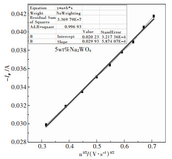 摘要: 采用三电极体系,应用方波伏安法分析NaCl-KCl-Na2WO4共融体系的电化学特性,重点研究了钨(Ⅵ)离子的电化学行为,结果表明:W(Ⅵ)→W(Ⅳ)还原过程的特征峰与W(Ⅳ)→W的特征峰发生相互重叠,W(Ⅵ)离子的还原过程分2步,即:W(Ⅵ)→W(Ⅳ)→W,其中第1步W(Ⅵ)→W(Ⅳ)过程可逆,第2步W(Ⅳ)→W过程不可逆.Abstract: Characteristics of NaCl -KCl -Na2WO4 communion system was analyzed by three -electrode system and square wave voltammetry, focusing on the electrochemical behavior of the tungsten ion (VI). The results show that the characteristic peak of reduction process of W (Ⅵ)→W (Ⅳ) and W (Ⅳ)→W is overlapping, and the reduction process of tungsten ion (VI) is divided into two steps, that is W (Ⅵ)→W (Ⅳ)→W, of which the first step is reversible, while the second step, W (IV)→W, is irreversible.