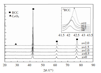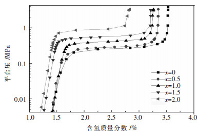 x increases), but the hydrogen desorption plateau pressure of the alloys with lower Ti/Cr ratio increases. All the alloys are composed of BCC and CeO