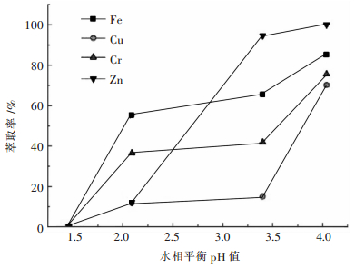 • 摘要: 对于镍电镀污泥的硫酸浸出液所回收得到的粗硫酸镍溶液,采用镍皂化的P507萃取剂净化。考察了料液pH、相比、萃取时间、温度对萃取过程的影响,绘制萃取等温线;考察负载有机相中主要杂质离子用不同浓度H2SO4反萃的效果及规律,提出用H2SO4反萃再生有机相的方案。结果表明,以体积含量为10%的P507+磺化煤油的有机相,通过直接皂化的方法制备镍皂有机相, 在皂化率80%、料液pH=2.2、相比VO/VA=1/8、温度30 ℃、时间5 mins条件下,经过6级逆流萃取可以使料液的铁降低到40 mg.L-1左右;对于除铁后料液,在皂化率80%、料液pH=3.3、相比VO/VA=1/8、温度30 ℃、时间5 mins的条件下,经过4级逆流萃取剩余杂质降至深度净化达标范围;负载有机相用4 mol.L-1 H2SO4VO/VA=5/1、30 ℃、5 min,经过3级逆流反萃可达到再生有机相的目的。反萃水相可返回至电镀污泥浸出工序回用。