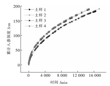 Infiltration rules of leaching solution in the process of ion-adsorption rare earth in-situ leaching play an important role in high efficiency mining and utilization of rare earth resources. One-dimensional horizontal infiltration experiment of ion-adsorption rare earth was carried out based on the self-made test device with 3% ammonium sulfate solution as the infiltration solution. In this experiment, the rules of cumulative infiltration length, wetting front velocity and infiltration rate of 4 different partical sizes rare earth were studied. The results show that the cumulative infiltration length indicates a trend of "rapidly increasing, then slowly developing"; the wetting front velocity and infiltration rate show the trend of "reaching maximum and sharply decreasing, then tend to be developing stably"; the relationship between wetting front velocity and infiltration time is a power function