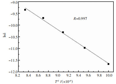 China has large reserves of copper slag that contains a variety of valuable metals and has a high secondary utilization value. In order to reveal the carbothermal reduction mechanism of iron extraction from copper slag, isothermal reduction experiments of carbon-bearing pellet in copper slag were carried out with anthracite as reducing agent, and the kinetic analysis was conducted to provide reference for the utilization of copper slag. The reduction temperatures set in this experiment were 1 000 ℃, 1 050 ℃, 1 100 ℃, 1 150 ℃ and 1 200 ℃, and the C/O molar ratio was 1.0. The results show that the temperature has an important effect on the reaction rate in the isothermal reduction experiment of carbon-bearing pellets in copper slag. The main rate limiting step of this reaction is gas phase diffusion, and the activation energy value is 118.059 kJ/mol. The phased kinetic analysis shows that the activation energy is in the range of 61.54~146.98 kJ/mol, and the value of the activation energy changes with the degree of reduction. The specific performances are as follows: the reaction activation energy value in the first stage is low, and the reason may be that in the initial stage of the reaction, the iron oxide (Fe