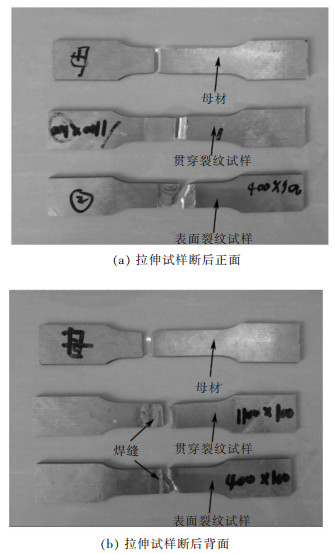 The pre-cracked 6061-T4 aluminum alloy plate was repaired by friction stir method. The microscopic metallographic structure, tensile properties and hardness distribution of the two types of surface cracks and through-wall cracks were studied. The results show that the two pre-cracked specimens can be healed by friction stir repair under suitable welding parameters. Due to dynamic recrystallization, grain refinement in the repair zone forms fine equiaxed grains. The tensile strength of the sample after crack repair can reach 78 % of that of the base metal, and the elongation of the surface crack sample 16.1 %, the elongation of the through-crack specimen 14.2 %, which is ductile fracture; the distribution curve of microhardness in the crack repairing zone basically shows a "W" shape.