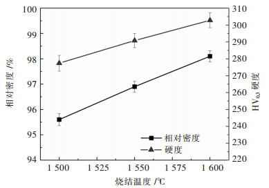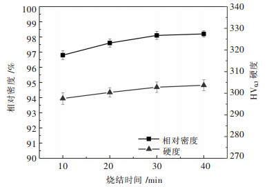 3/Mo composite material increased with the increase of microwave sintering temperature and sintering time, and reached 98.1% and 2.969 GPa, respectively, at the sintering temperature of 100 ℃ for 30 min. The densification mechanism of 6% Al