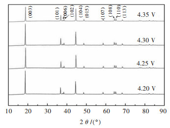 2 as cathode material, and electrochemical tests were performed at different upper voltage limits (4.2 V, 4.25 V, 4.3 V, 4.35 V). X-ray diffraction (XRD) and scanning electron microscopy (SEM) were used to characterize the structure and morphology of the pole pieces after 100 cycles. The XRD pattern showed that the batteries after 100 cycles still had a α-NaFeO