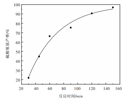 High titanium slag is mainly used for producing titanium dioxide or titanium alloy. However its application in preparing the intermediate product, titanium sulfate, is seldom studied. In this paper, the sulfuric acid treatment of high titanium slag to prepare oxytitanium sulfate provided a new way for its resource utilization. Thermodynamic calculations showed that the one-step transformation of high titanium slag and concentrated sulfuric acid into oxytitanium sulfate was feasible, and the heating temperature should not be too high in order to avoid the cost and environmental pollution caused by the pyrolysis of concentrated sulfuric acid. Single-factor experiments showed that at a temperature of 350 ℃, a time of 150 min and a liquid-solids mass ratio of 3:1, the yield of titanium oxide sulfate could reach 95%; X-ray diffraction (XRD) and scanning electron microscopy spectroscopy (SEM-EDS) showed that the product, TiOSO