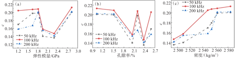摘要: 为了研究饱和度对岩石超声波横波传播规律影响,以红砂岩为研究对象,开展不同饱和度下入射频率分别为50、100、200 kHz的超声波横波传播实验,分析饱和度及入射频率对横波声学参数变化规律。结果表明:干燥至饱和状态,横波波速随饱和度增大呈非线性下降趋势,幅值衰减系数随饱和度增大呈非线性递增趋势,均满足三次函数关系,属于高度相关;整体分析发现横波波速受饱和度变化影响大于幅值衰减系数,幅值衰减系数拟合参数能较好反映岩样物理量的变化;基于敏感性及决定系数的综合考虑,建议今后采用100 kHz作为含水砂岩超声波横波测试优势频率。研究成果可为不同饱和度下岩石超声波测试技术发展提供参考。Abstract: To study the influence of saturation on the ultrasonic shear wave propagation law of rocks, with red sandstone as the research object, ultrasonic shear wave propagation tests were conducted with frequencies of 50, 100 and 200 kHz under different saturations, and the variation law of saturation and frequency on shear wave acoustic parameters were analyzed. The results show that the shear wave velocity decreases nonlinearly with increasing saturation, and the amplitude attenuation coefficient increases nonlinearly with increasing saturation, both of which meet the cubic function relationship and are highly correlated. The overall analysis shows that the influence of saturation on shear wave velocity is greater than that of the amplitude attenuation coefficient, and the fitting parameters of the amplitude attenuation coefficient can better reflect the changes in physical quantities of rock samples. Based on the comprehensive consideration of sensitivity and determination coefficient, it is suggested to use 100 kHz as the dominant frequency of ultrasonic shear wave testing for water-bearing sandstone in the future. The research results can provide a reference for the development of rock ultrasonic testing technology under different saturations.