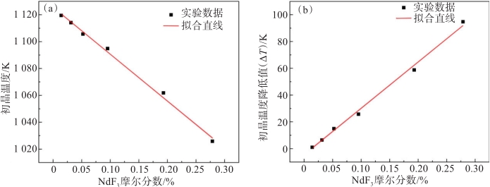 3 molten salt system was analyzed by cryoscopic method. The possible ion clusters in the molten salt system were analyzed by Temkin and Flood models and thermodynamic calculation. The results show that the dissolution model of NdF