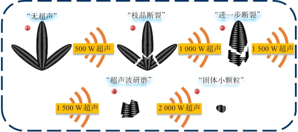 In this paper, ultrasound-assisted copper removal from zinc sulfate solution was conducted, focusing on the mechanism of ultrasonic enhancement in copper removal by zinc replacement. The study used techniques including metallographic microscopy, scanning electron microscopy, X-ray diffractometry and Image J to characterize the morphology and distribution of the replacement product layer. The Cu(Ⅱ) concentration in the solutions at different purification stages was also analyzed by plasma emission spectrometry. The results showed that the ultrasonic intensity could affect the copper removal by replacement in purification. The low-intensity ultrasound (500 W) affects the interfacial products weakly, while the high-intensity ultrasound (2000 W) significantly affects the morphology and distribution of the solid product layer. Furthermore, it can reinforce the diffusion process in the solid product layer, and the generated thermal effect also contributes to the replacement reaction efficiency. The high-powered ultrasound leads to a discontinuous distribution of small sphere-like particles over the zinc surface, enlarging the contact area between the two phases. At the same time, it forms through holes in the solid product layer, reducing the structural resistance to diffusion of the solution.