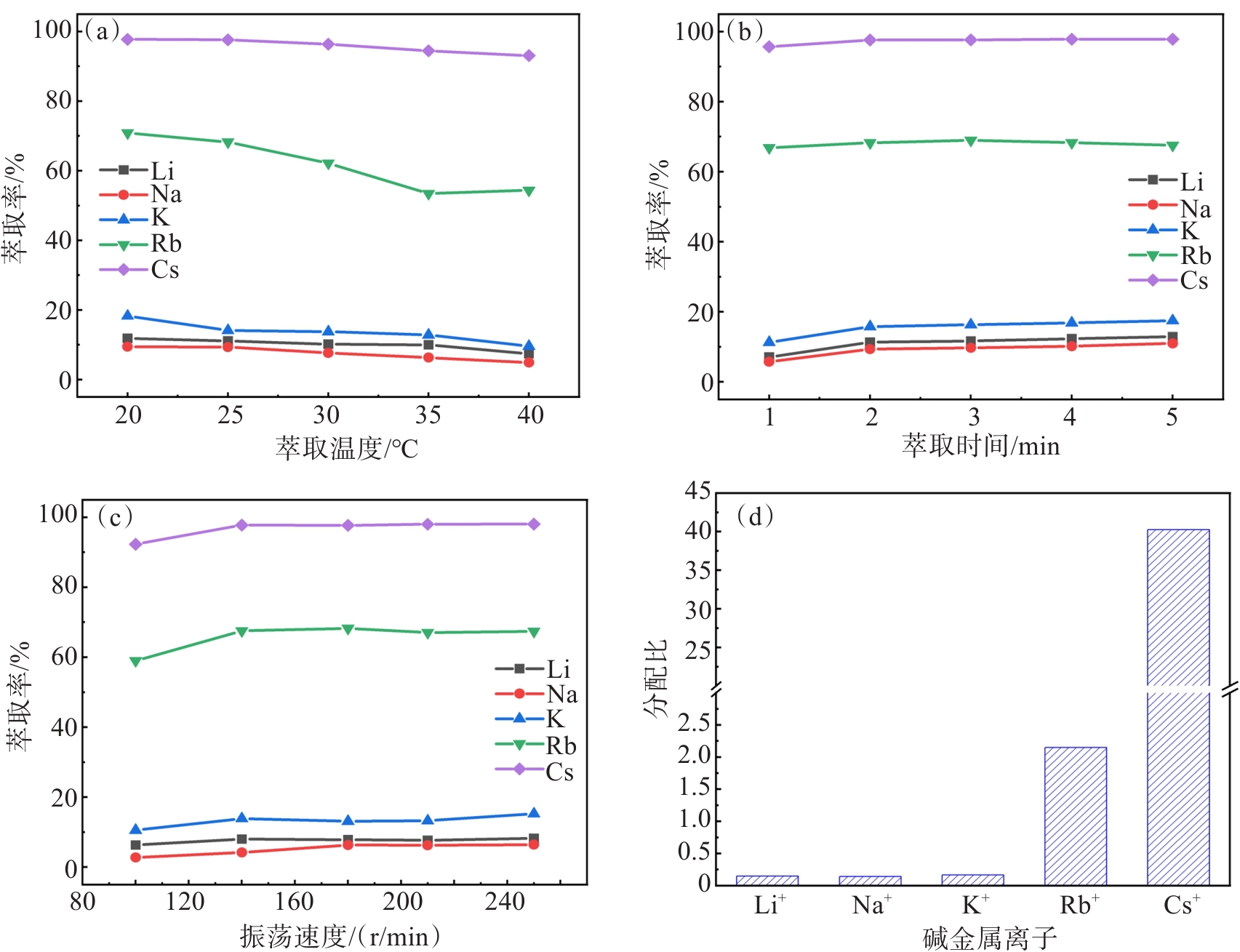 + reached 68.22% and 97.57%, respectively. Under the same condition, the extraction rates of Rb