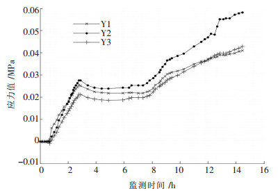 The stability of bulkhead is important to the safety in the process of cemented filling. According to practical situation of the project, the distribution regularity and characteristics of forces on bulkhead in filling were obtained by measuring its lateral stress on the spot. The experiment proved that the stress on the bulkhead was influenced by hydrostatic pressure, hydrodynamic pressure and swelling force of filling slurry. Its stress reaches the greatest in the final filling stage, which is most easily broken. Calculation resulting from formulae fits part of test data satisfactorily. Reasonable thickness of bulkhead has been obtained from the above mentioned study.
